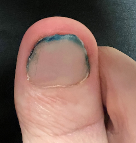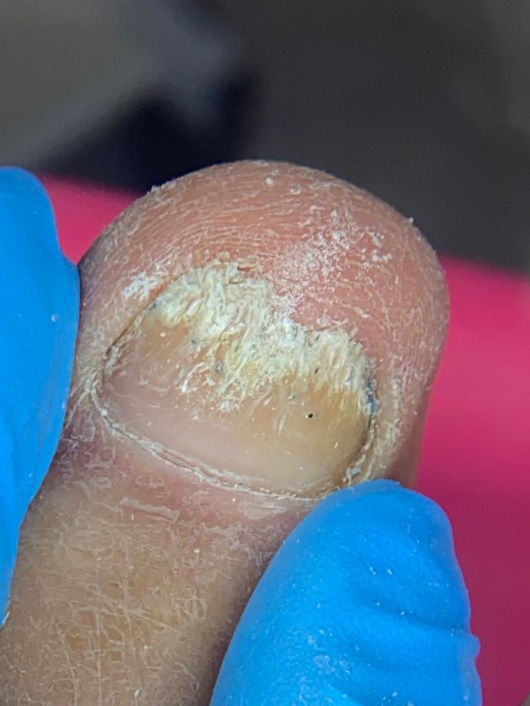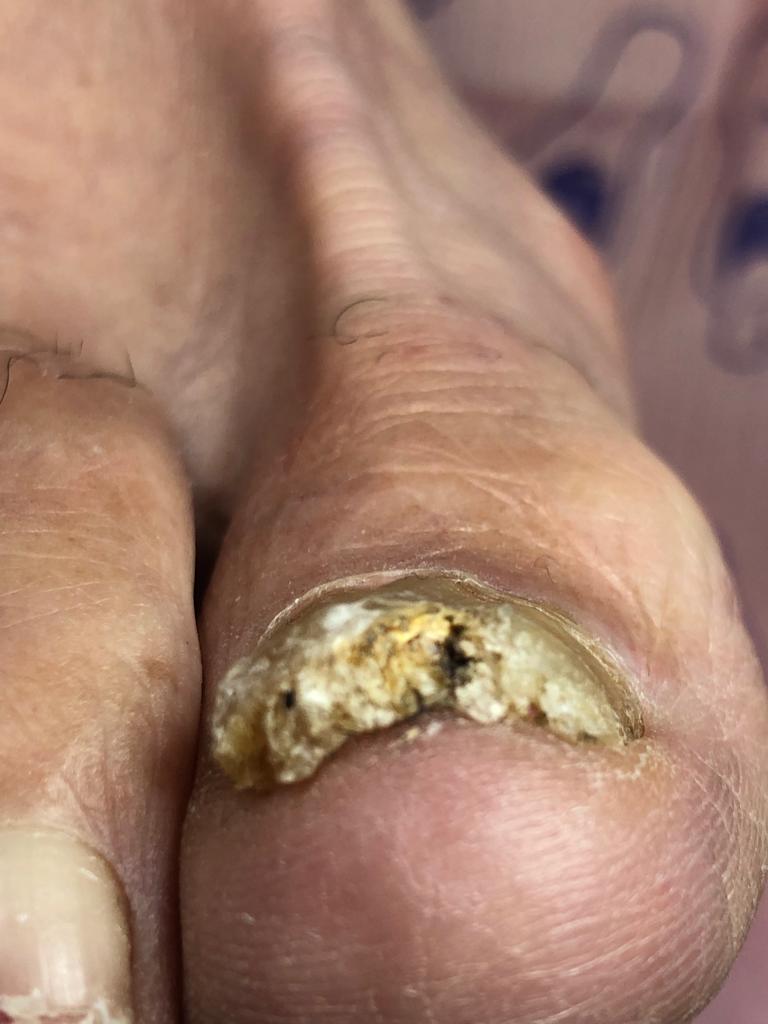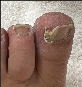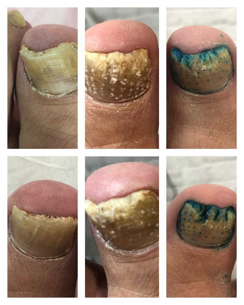 A male patient with onychomycosis. ToeFX was used to effectively treat the nails as shown.